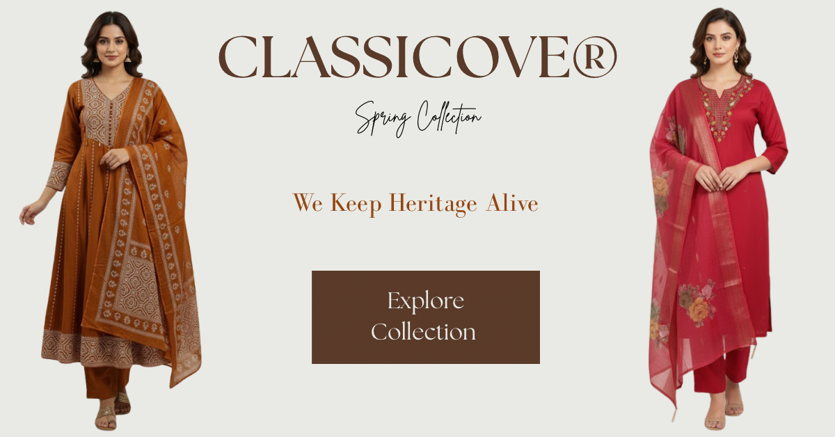 Born from a vision to keep traditions alive in a modern world, ClassiCove® brings together timeless heritage designs and contemporary everyday style. From elegant ethnic wear to modern sunglasses and comfortable essentials, every product reflects craftsmanship, quality, and authenticity.