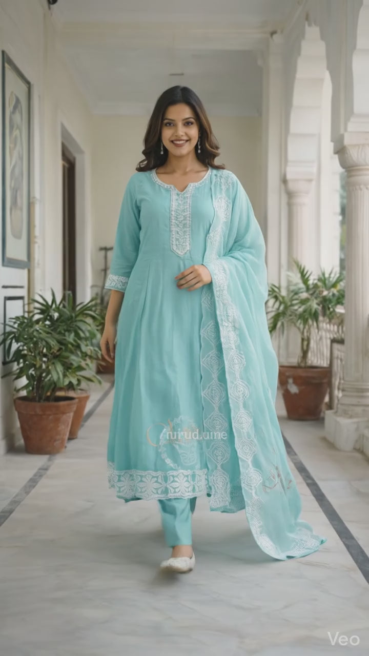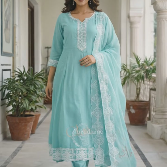 Anarkali suit with Pant Style bottom and comes with organza dupatta
